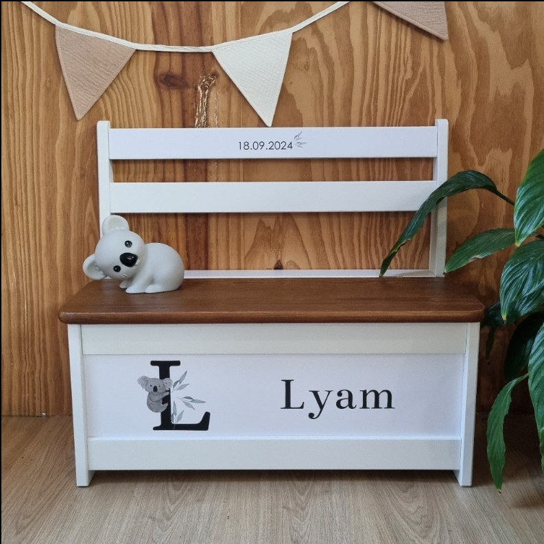 Speelgoedbankje Naturel Zitting | Opbergbankje met naam (en kussentje) - stijl geboortekaartje