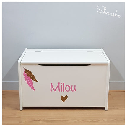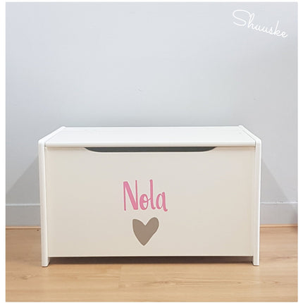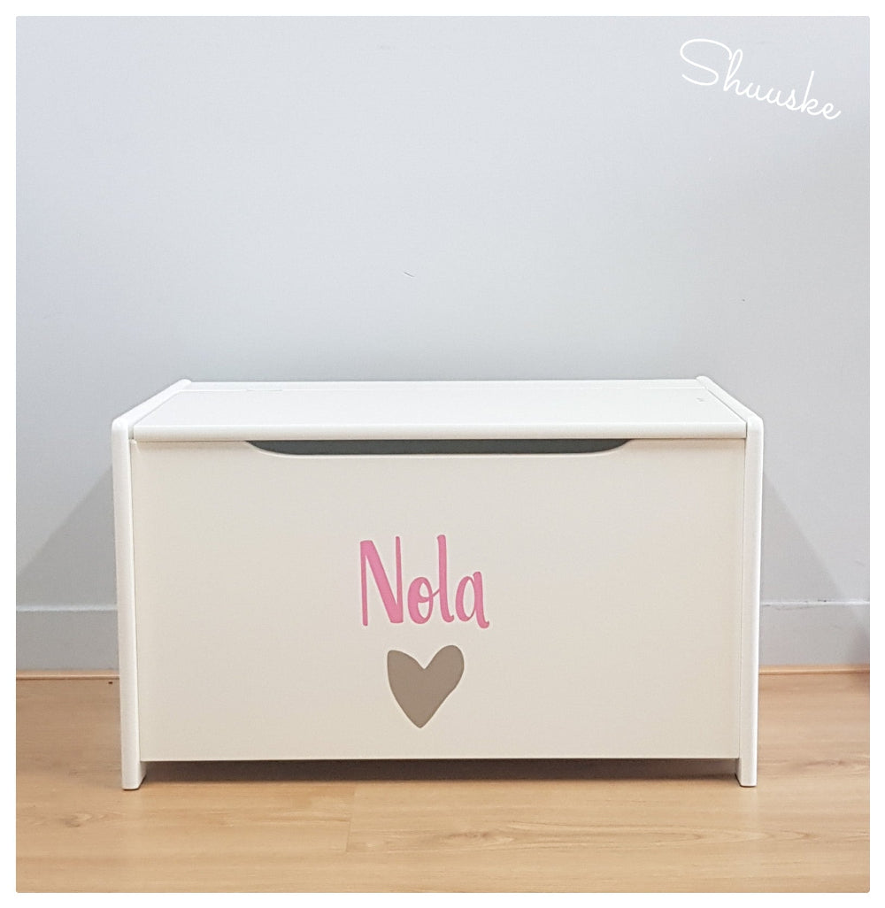 Deze wit houten speelgoedkist is ideaal om al het speelgoed in op te bergen. De kist met naam heeft aan de zijkant handige uitsparingen om de kist makkelijk te kunnen verplaatsen.